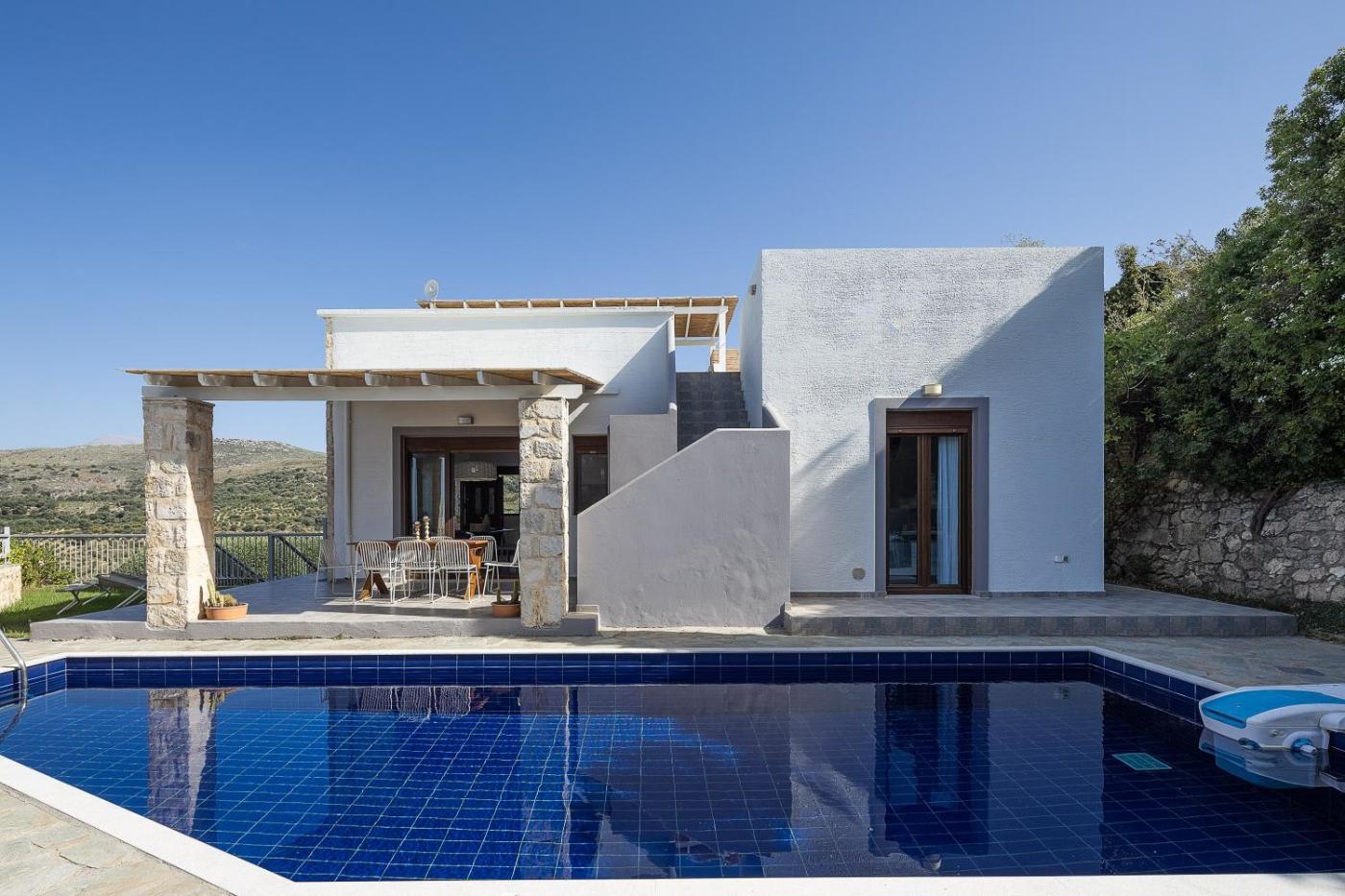 Located in Agia Triada, Villa Ikaros provides accommodation with free WiFi, air conditioning, a private beach area and access to a garden with an outdoor pool. The property features mountain and pool views, and is 12 km from Archaeological Museum of Rethymno. There is free private parking and the property offers paid airport shuttle service.