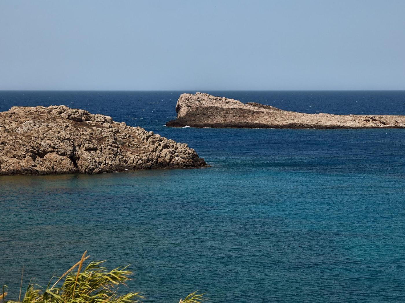 Grande 2 Bedrooms Suite Panoramic Sea View. This 2-bedroom suite features panoramic sea view, pool view and view of Panormos Bay. Situated on the 1st floor, they have a built-in king-size bed, spacious seating area with built-in sofas, private veranda and stone-built bathroom with distinctive decoration. Please note that this room type cannot accommodate an extra guest in an existing bed. Please note that some units include stairs. ;