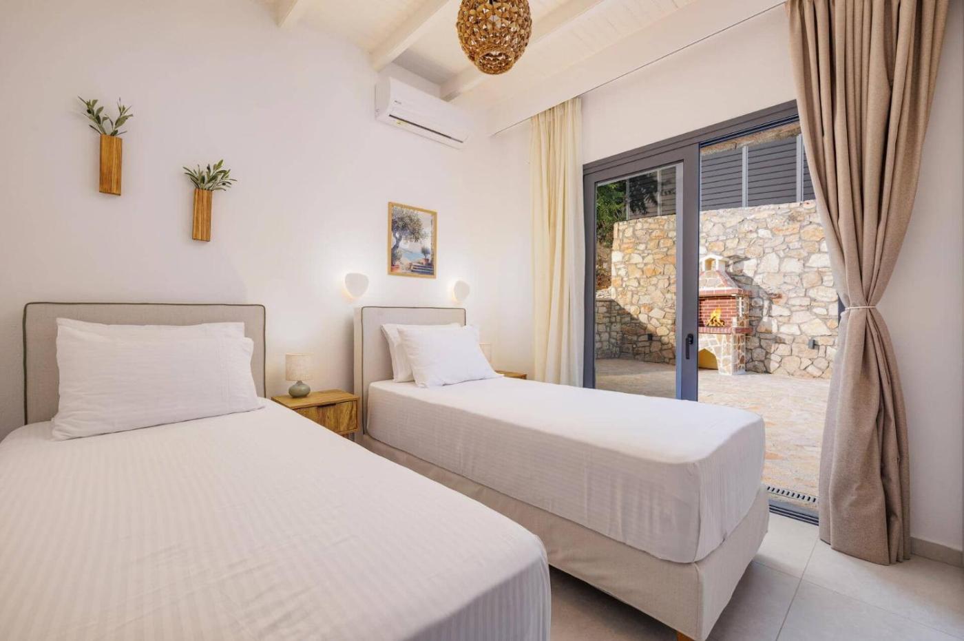 Two-Bedroom Villa. This villas standout feature is the private pool. The air-conditioned villa has 2 bedrooms and 2 bathrooms with a shower and a hairdryer. Guests will find a dishwasher and a microwave in the kitchen. The villa also features a barbecue. The villa offers a washing machine, a tea and coffee maker, a safe deposit box, a TV, as well as sea views. The unit has 3 beds.