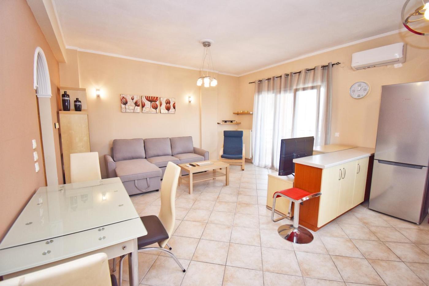One-Bedroom Apartment. Boasting a private entrance, this air-conditioned apartment features 1 living room, 1 separate bedroom and 1 bathroom with a bath and a shower. In the kitchen, guests will find a stovetop, a refrigerator, an oven and a tea and coffee maker. Featuring a balcony with sea views, this apartment also features a washing machine and a flat-screen TV. The unit has 2 beds.