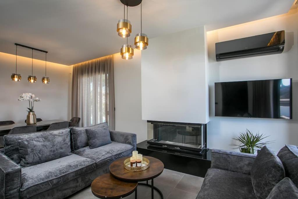 Three-Bedroom Villa. This villas standout features are the pool with a view and fireplace. This air-conditioned villa includes 1 living room, 3 separate bedrooms and 2 bathrooms with a bath or a shower. Guests will find a stovetop, a refrigerator, a dishwasher and an oven in the well-equipped kitchen. The villa also features a barbecue. The villa offers a flat-screen TV with streaming services, a washing machine, soundproof walls, a tea and coffee maker as well as garden views. The unit has 3 beds.
