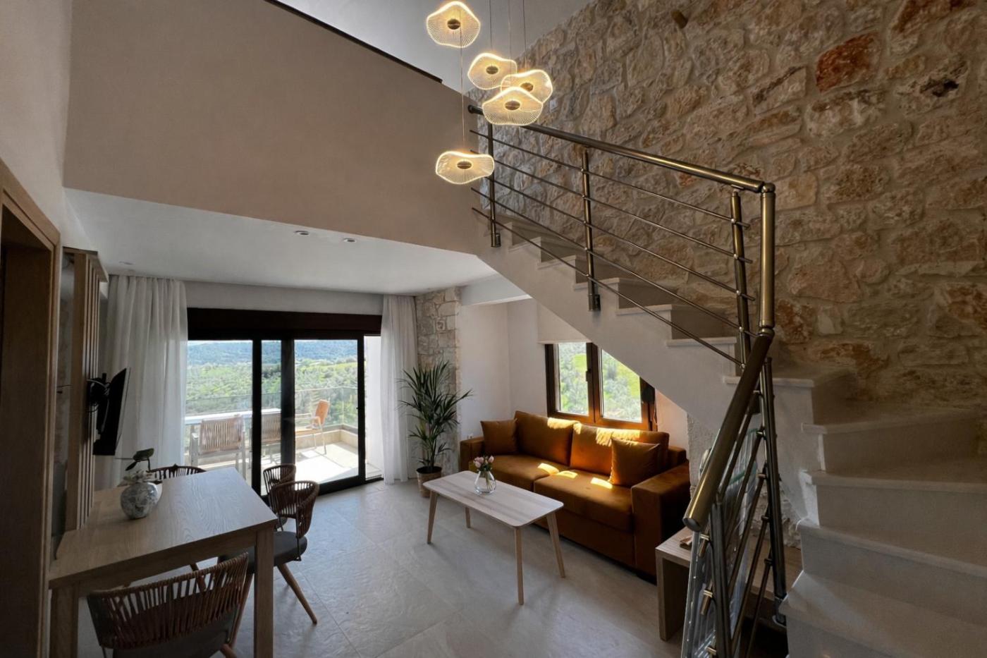 Deluxe Suite. This suite features a pool with a view. Boasting a private entrance, this air-conditioned suite features 1 living room, 1 separate bedroom and 1 bathroom with a walk-in shower and a hairdryer. Guests will find a stovetop, a refrigerator, kitchenware and a tea and coffee maker in the kitchen. The suite also comes with a barbecue. Featuring a terrace with mountain views, this suite also features a washing machine and a flat-screen TV. The unit has 2 beds. ;