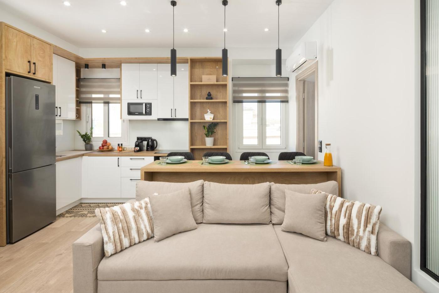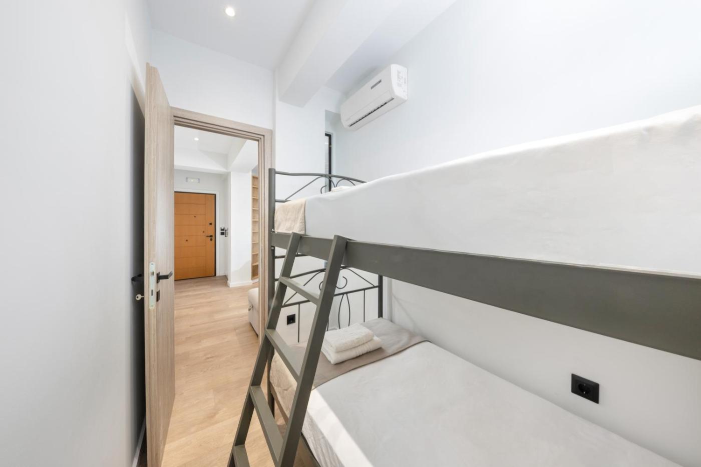 Two-Bedroom Apartment. Boasting a private entrance, this air-conditioned apartment comes with 1 living room, 2 separate bedrooms and 1 bathroom with a walk-in shower and a hairdryer. Guests can make meals in the kitchen that features a stovetop, an oven, a microwave and a toaster. The apartment features a washing machine, a tea and coffee maker, a seating area, a flat-screen TV with streaming services, as well as city views. The unit has 4 beds.