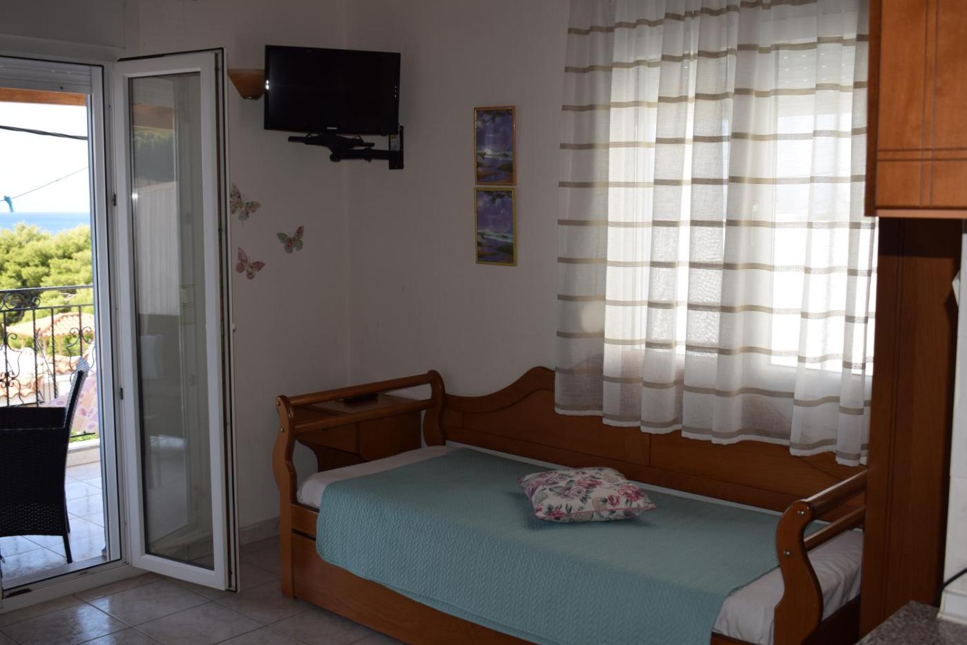 Apartment with Sea View. This air-conditioned apartment is comprised of 1 living room, 1 separate bedroom and 1 bathroom with a shower. Guests can make meals in the kitchen that comes with a stovetop, a refrigerator, kitchenware and an oven. Featuring a balcony with sea views, this apartment also offers soundproof walls and a flat-screen TV. The unit offers 3 beds. ;