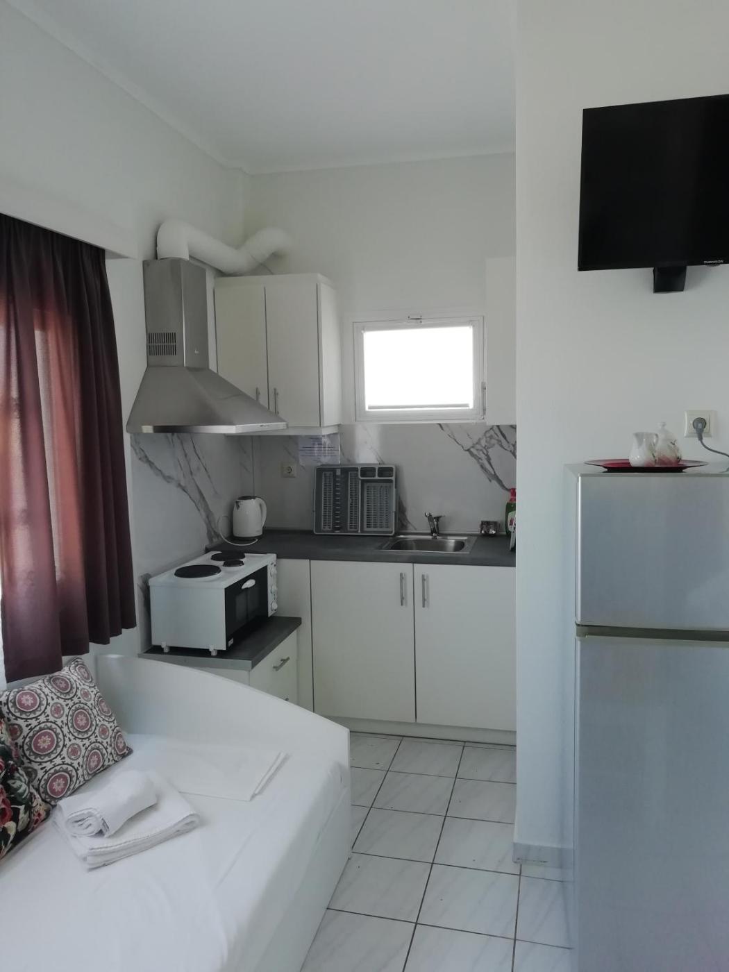 Studio with Sea View (2 Adults). Guests can make meals in the kitchen that comes with a stovetop, a refrigerator, kitchenware and an electric kettle. This air-conditioned studio includes a flat-screen TV with streaming services, a private bathroom as well as a balcony with sea views. The unit offers 1 bed. ;